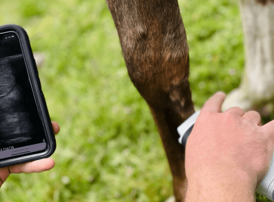 Each of our equine vets is equipped with a Wireless Ultrasound Scanner, enabling quick, on-the-spot imaging to help assess clinical issues. Whether it’s investigating a colic case, checking tendons, joints, lungs or a suspicious swelling, these scanners provide real-time visuals that appear on the vet’s phone or tablet and can be shared with you if desired.